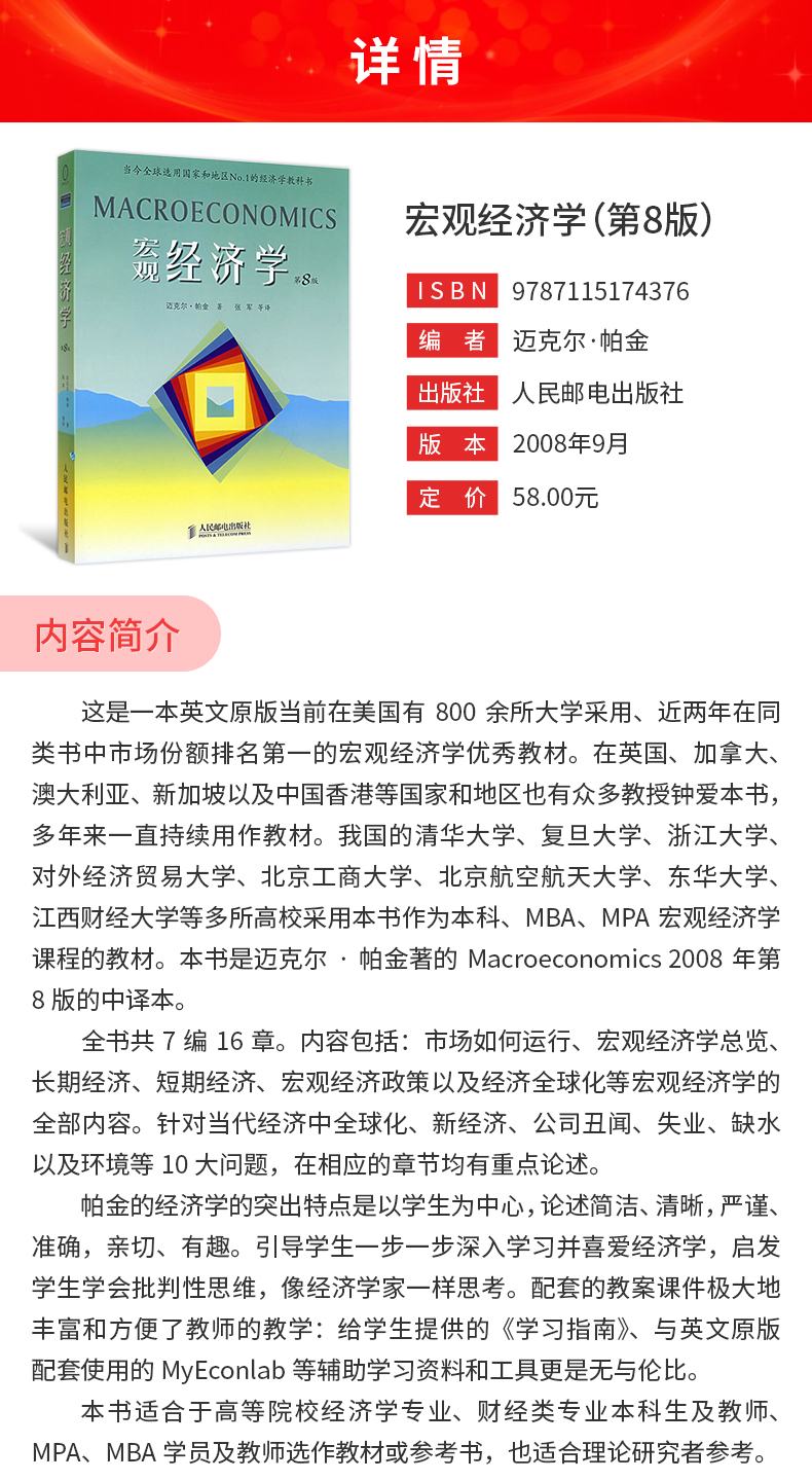 帕金《宏观经济学》(第8版)教材(人民邮电出版社)