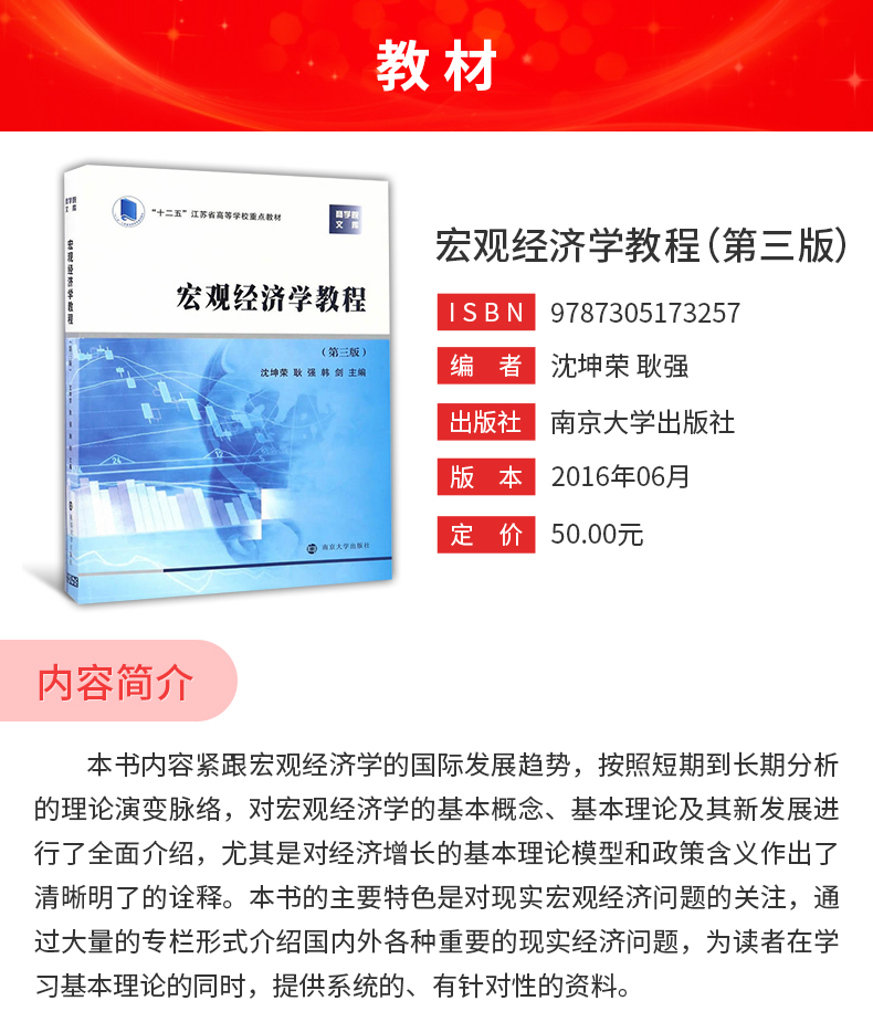 沈坤荣《宏观经济学教程》(第3版)教材(南京大学出版社)