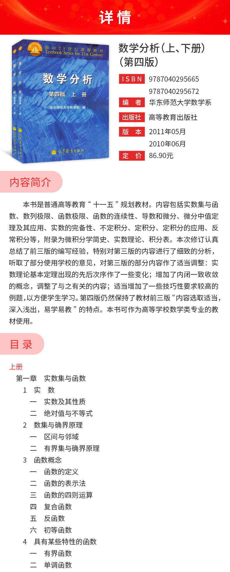 华东师范大学数学系《数学分析》(第4版)(上、下册)教材(高等教育出版社)