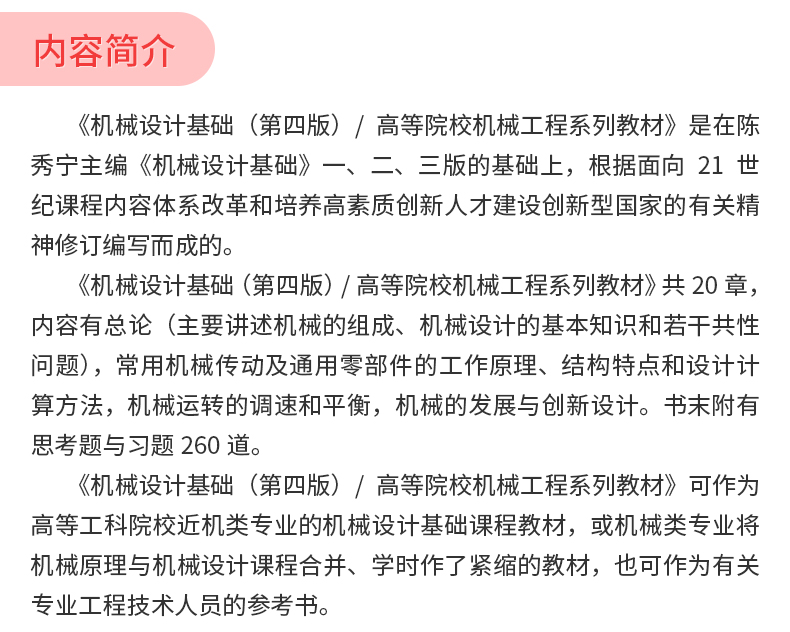 陈秀宁《机械设计基础》(第4版)教材(浙江大学出版社)