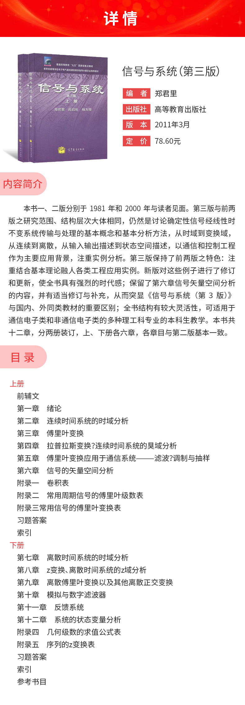 郑君里《信号与系统》(第3版)(上、下册)教材(高等教育出版社)