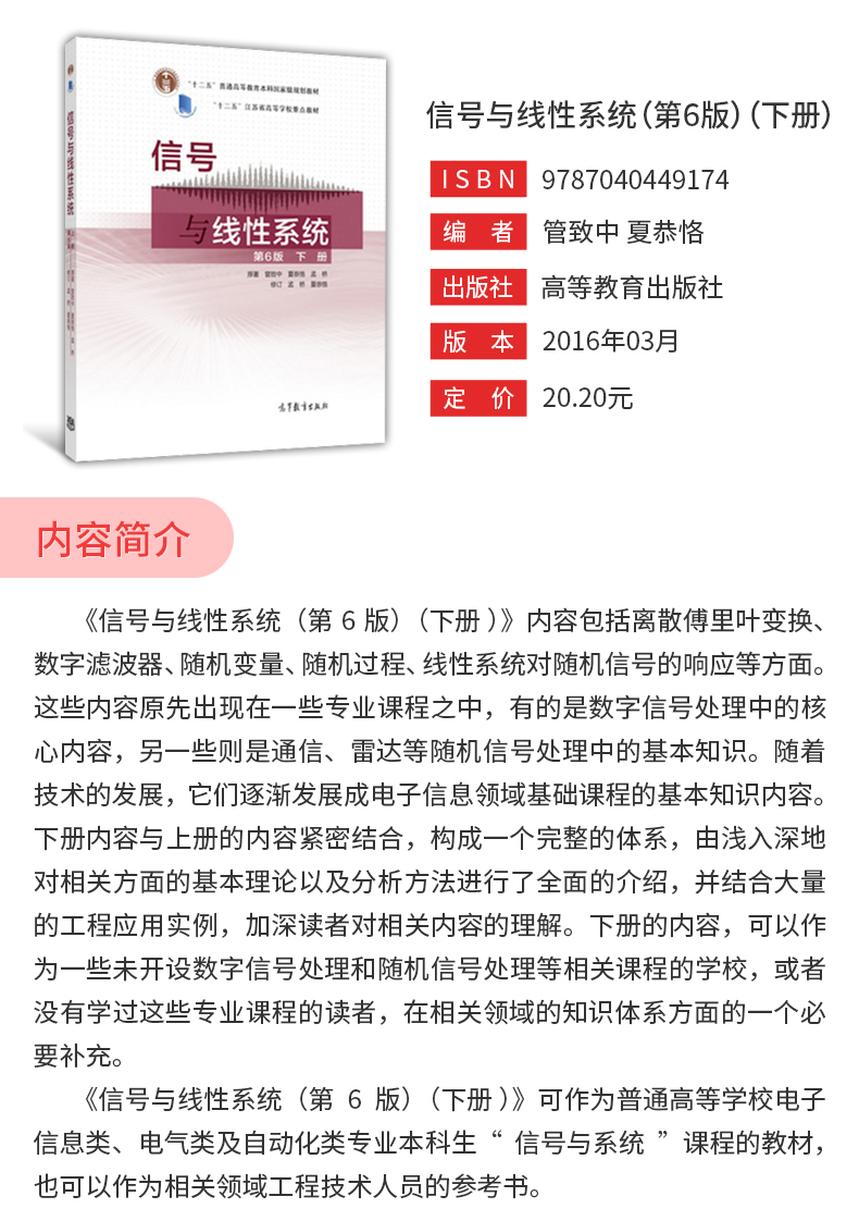管致中《信号与线性系统》(第6版)教材(高等教育出版社)