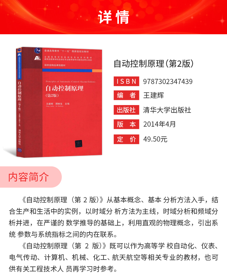 王建辉《自动控制原理》(第2版)教材(清华大学出版社)