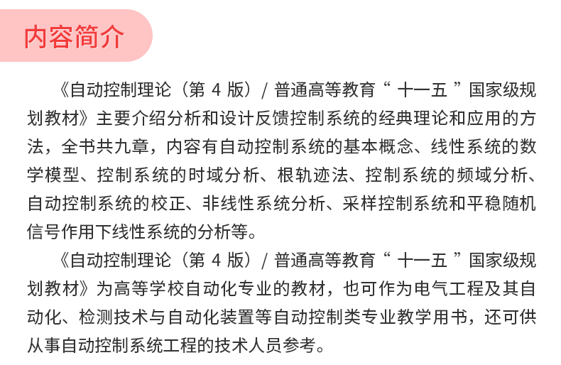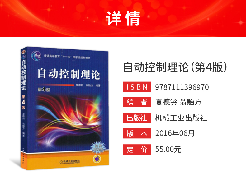 夏德钤《自动控制理论》(第4版)教材(机械工业出版社)