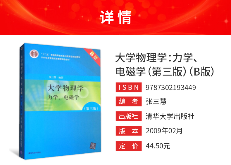 张三慧《大学物理学:力学、电磁学》(第3版)(B版)教材(清华大学出版社)
