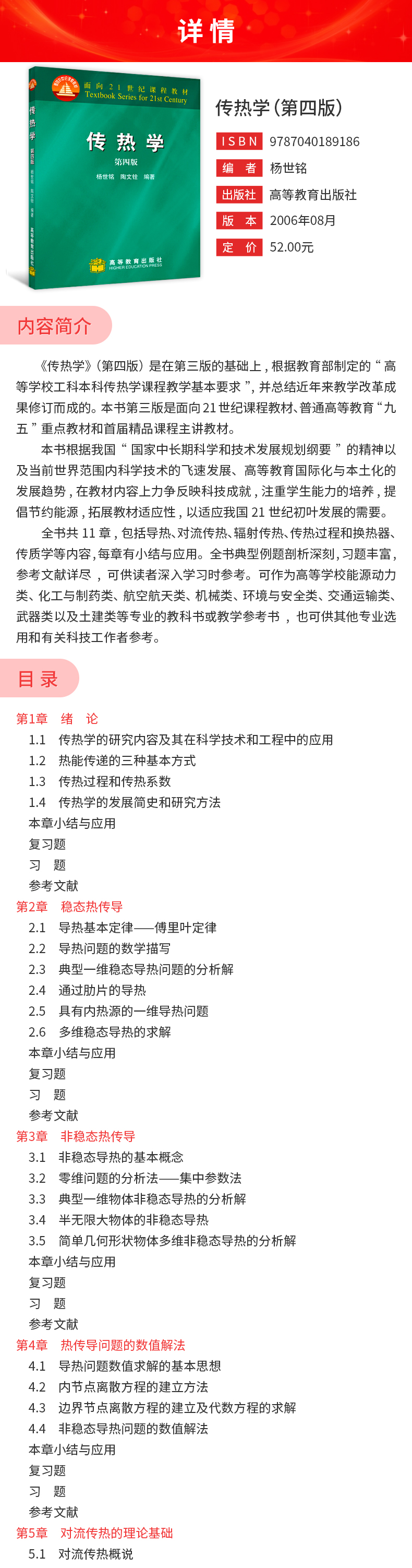 杨世铭《传热学》(第4版)教材(高等教育出版社)