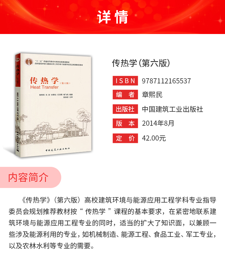 章熙民《传热学》(第6版)教材(中国建筑工业出版社)