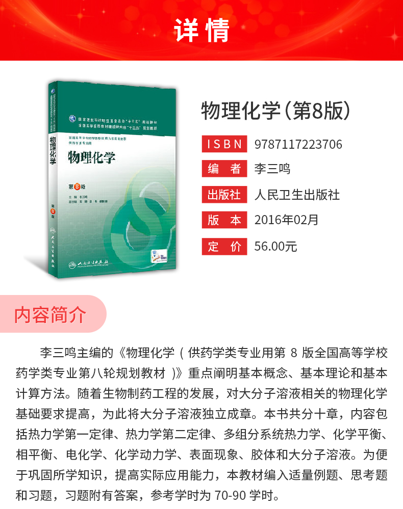 李三鸣《物理化学》(第8版)教材(人民卫生出版社)