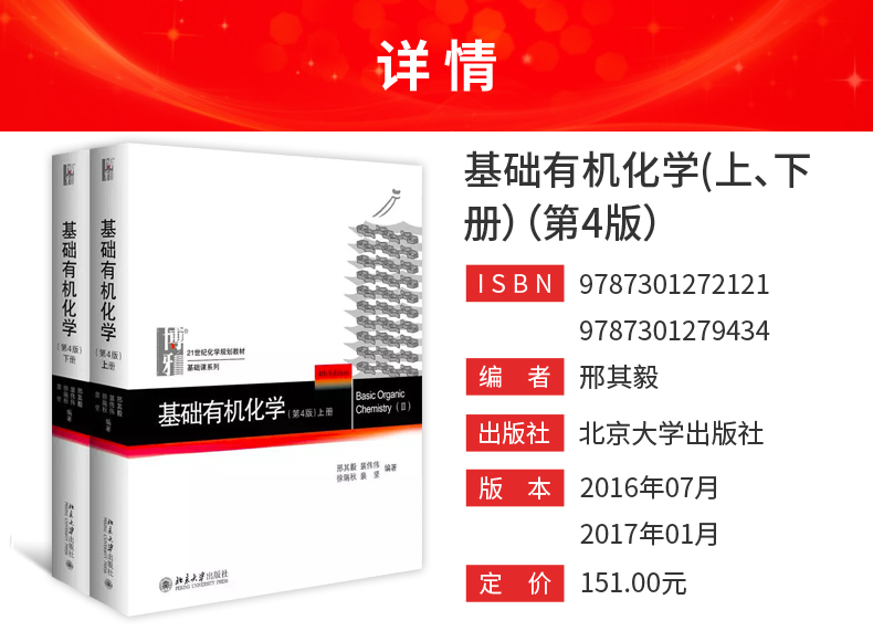 邢其毅《基础有机化学》(第4版)教材(上、下册)(北京大学出版社)