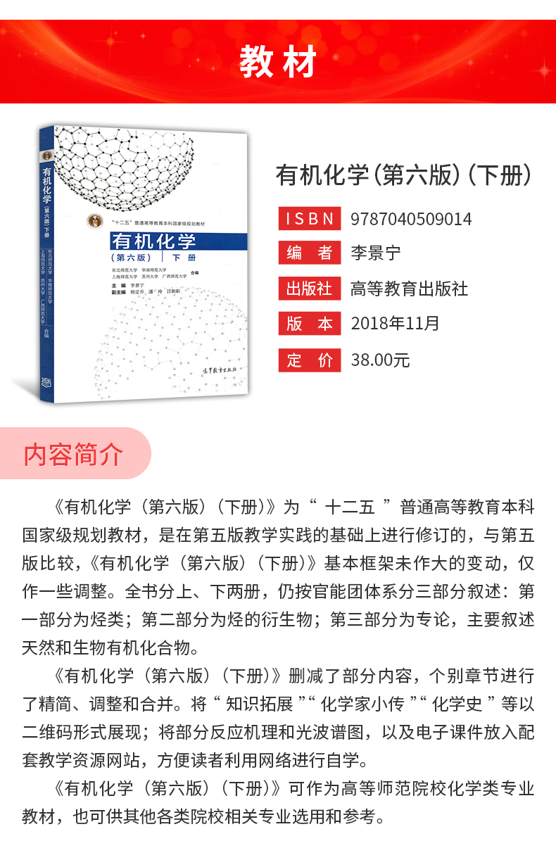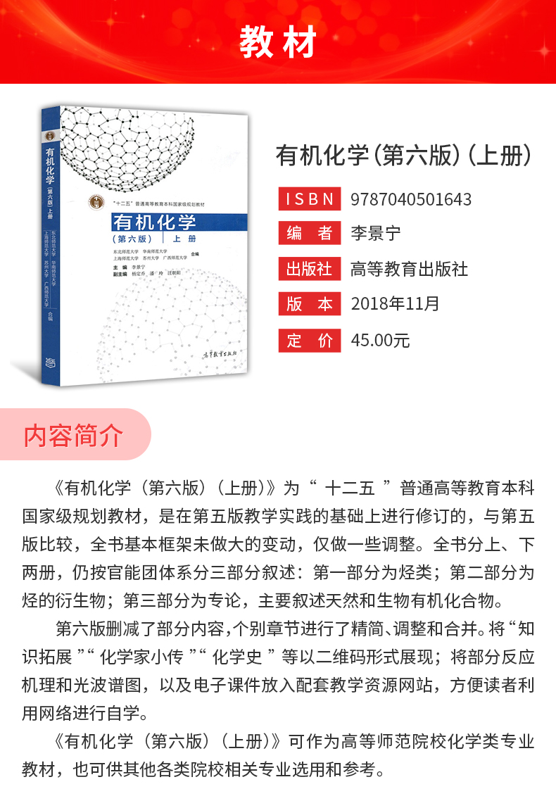 李景宁《有机化学》(第6版)(上、下册)教材(高等教育出版社)