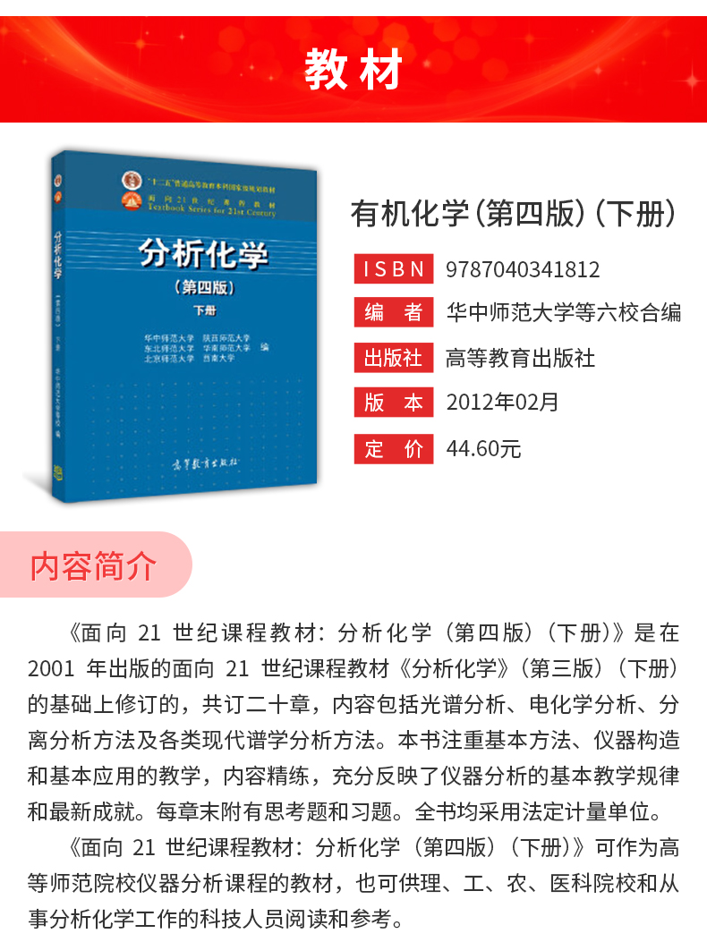 华中师范大学等六校合编《分析化学》(第4版)(上、下册)教材( 高等教育出版社)