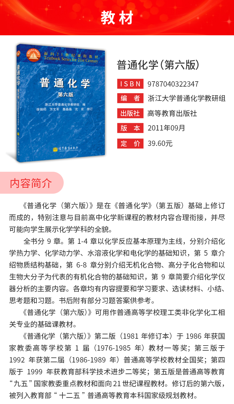 浙江大学《普通化学》(第6版)教材(高等教育出版社)