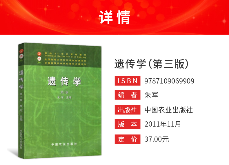 朱军《遗传学》(第3版)教材(中国农业出版社)