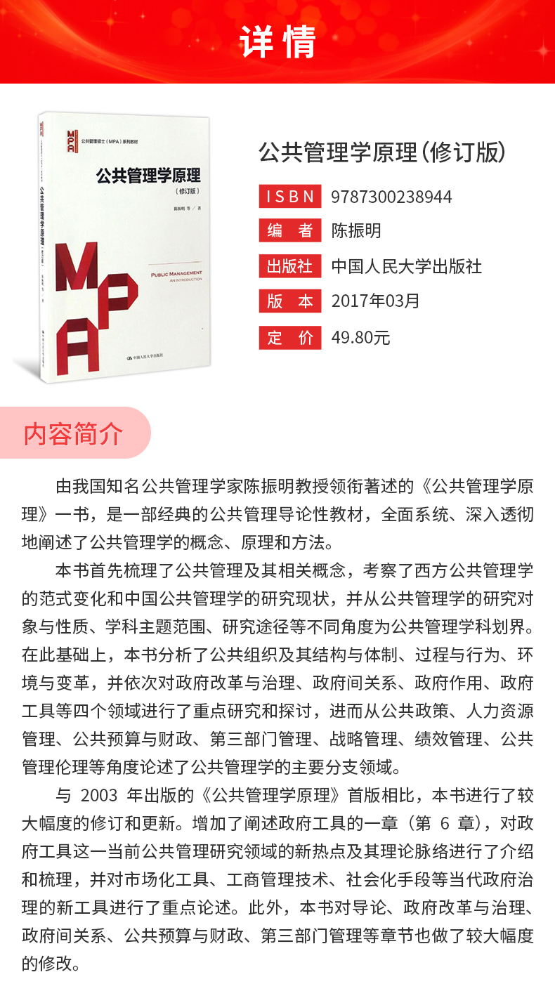 陈振明《公共管理学原理》(修订版)教材(中国人民大学出版社)