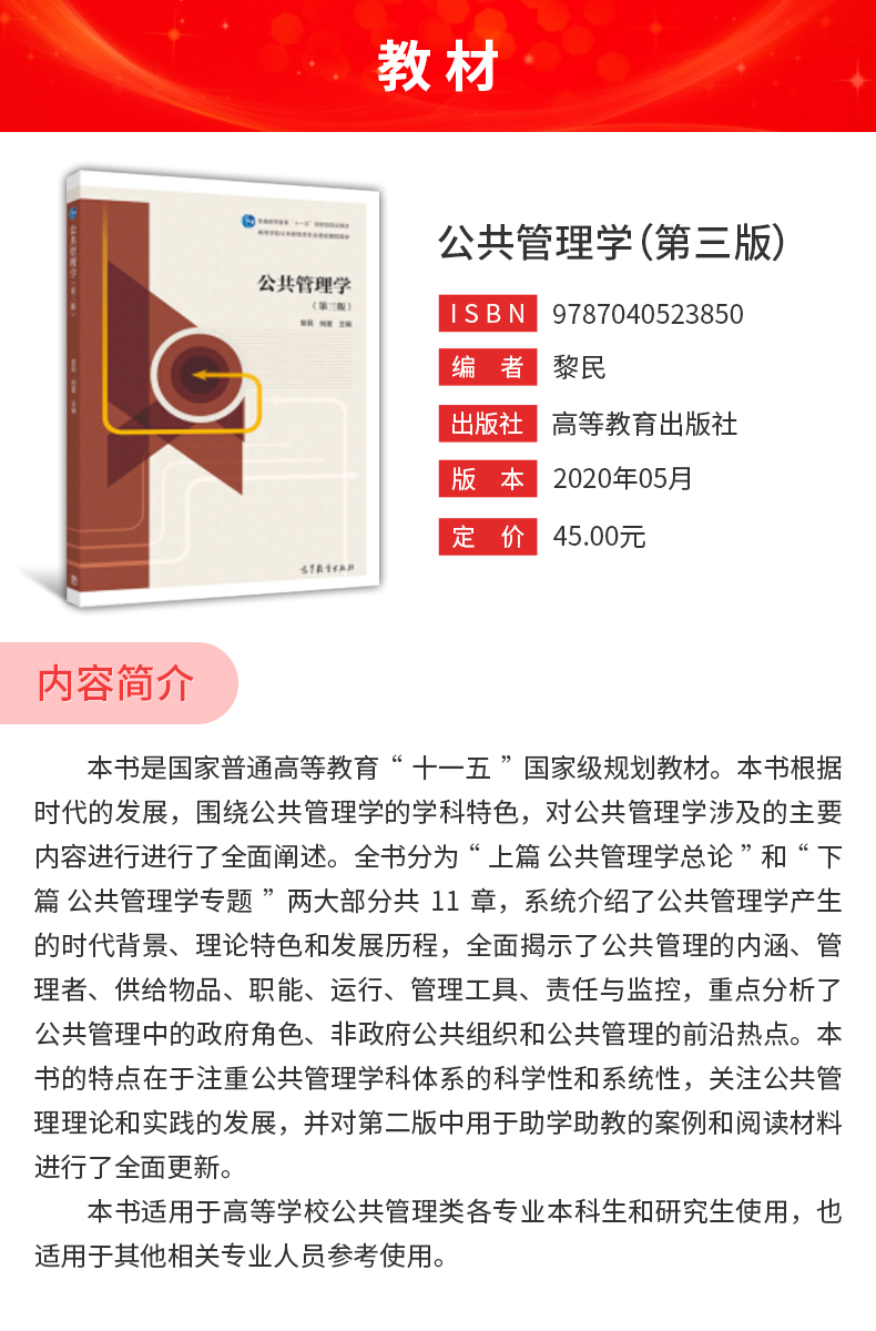 黎民《公共管理学》(第3版)教材(高等教育出版社)