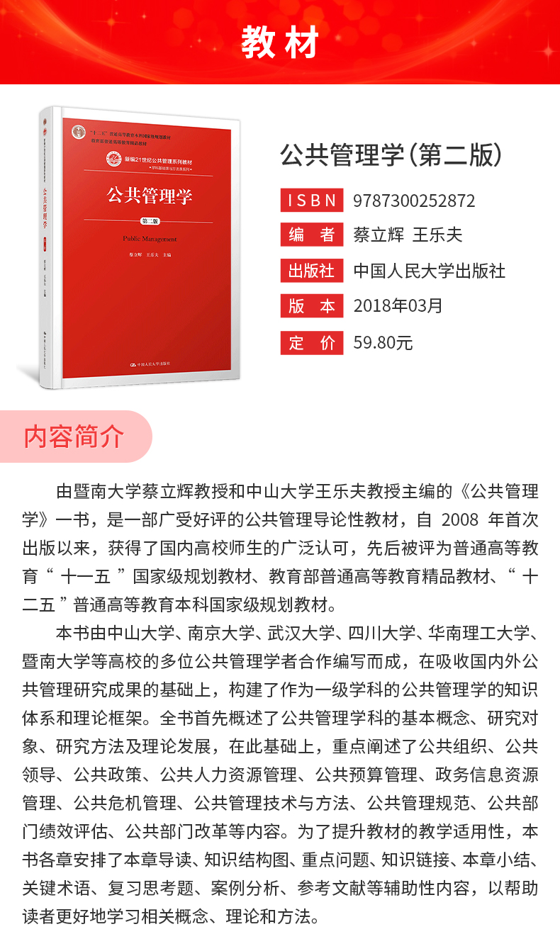蔡立辉、王乐夫《公共管理学》(第2版)教材(中国人民大学出版社)