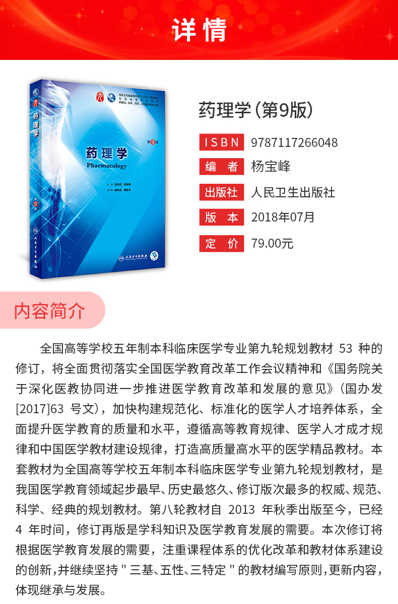 杨宝峰《药理学》(第9版)教材(人民卫生出版社)