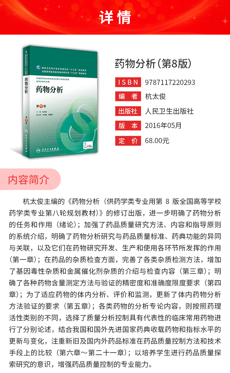 杭太俊《药物分析》(第8版)教材(人民卫生出版社)