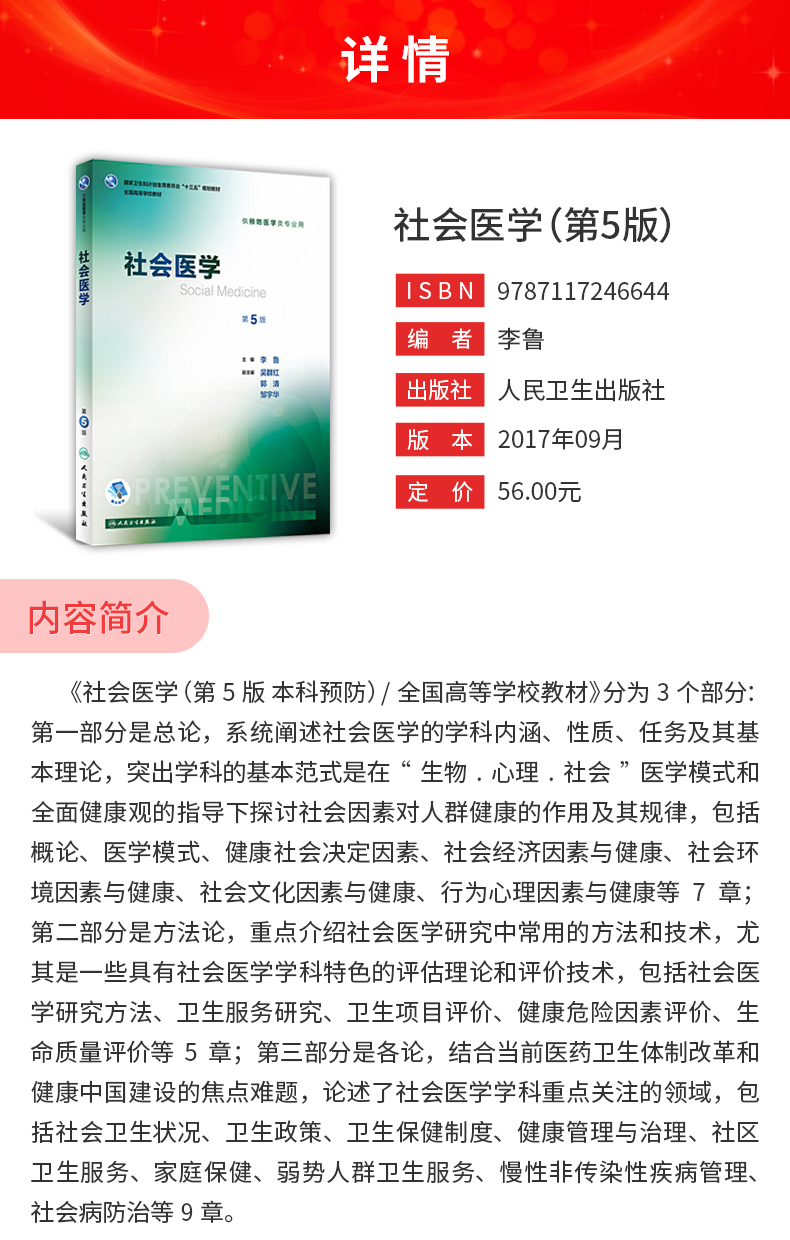 李鲁《社会医学》(第5版)教材(人民卫生出版社)