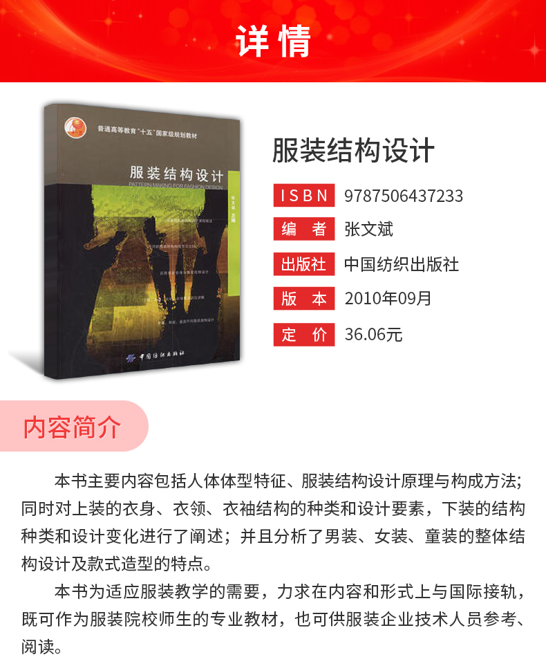 张文斌《服装结构设计》教材(中国纺织出版社)