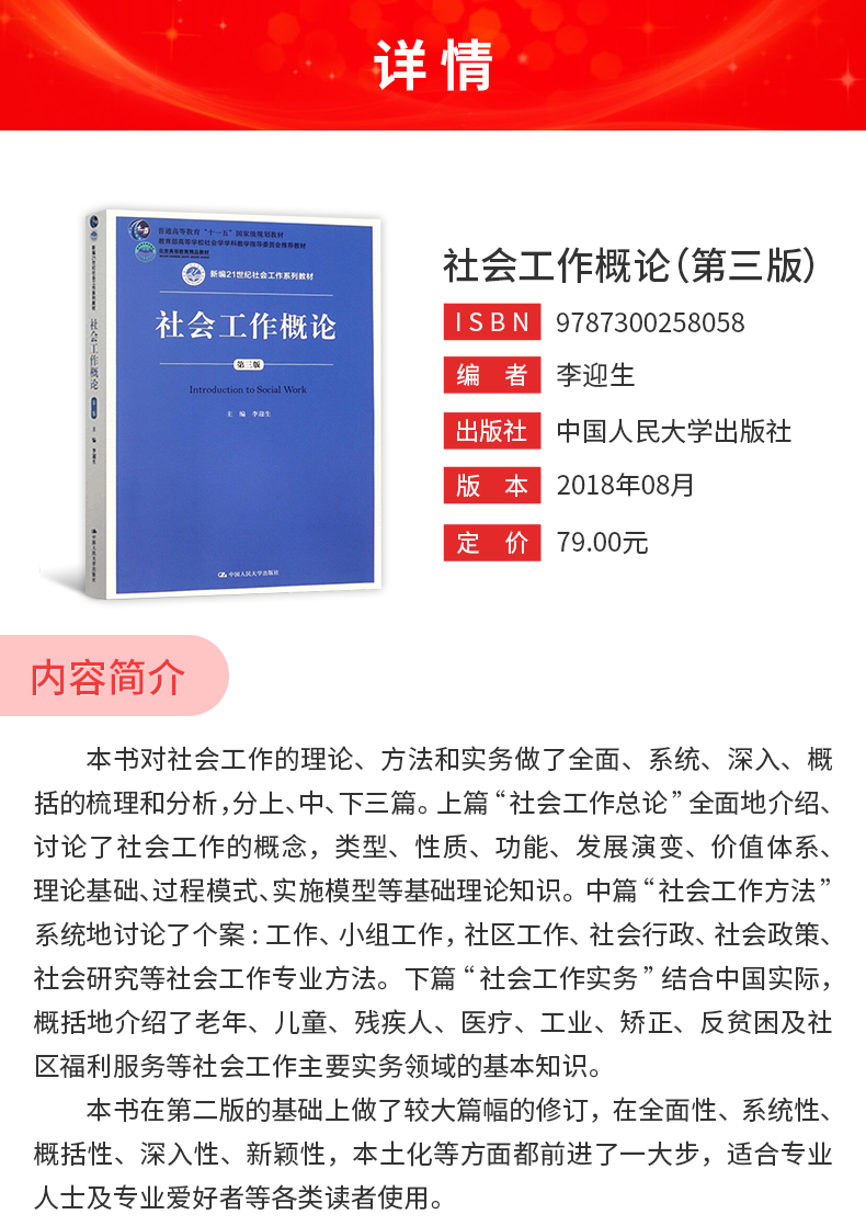 李迎生《社会工作概论》(第3版)教材(中国人民大学出版社)