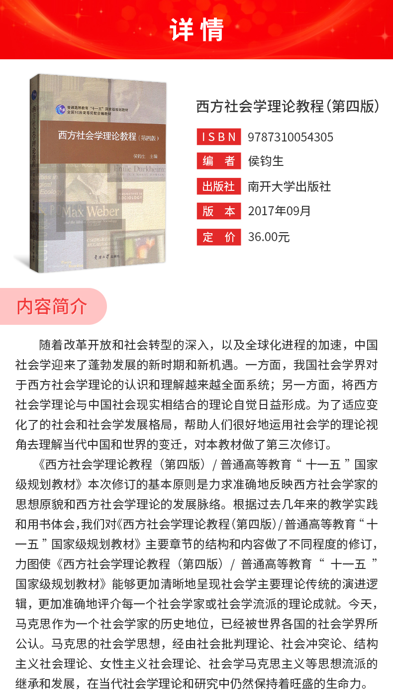 侯钧生《西方社会学理论教程》(第4版)教材(南开大学出版社)