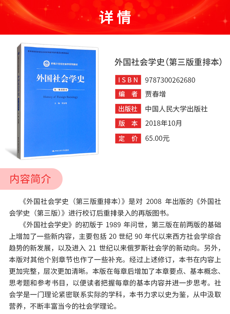 贾春增《外国社会学史》(第3版重排本)教材(中国人民大学出版社)