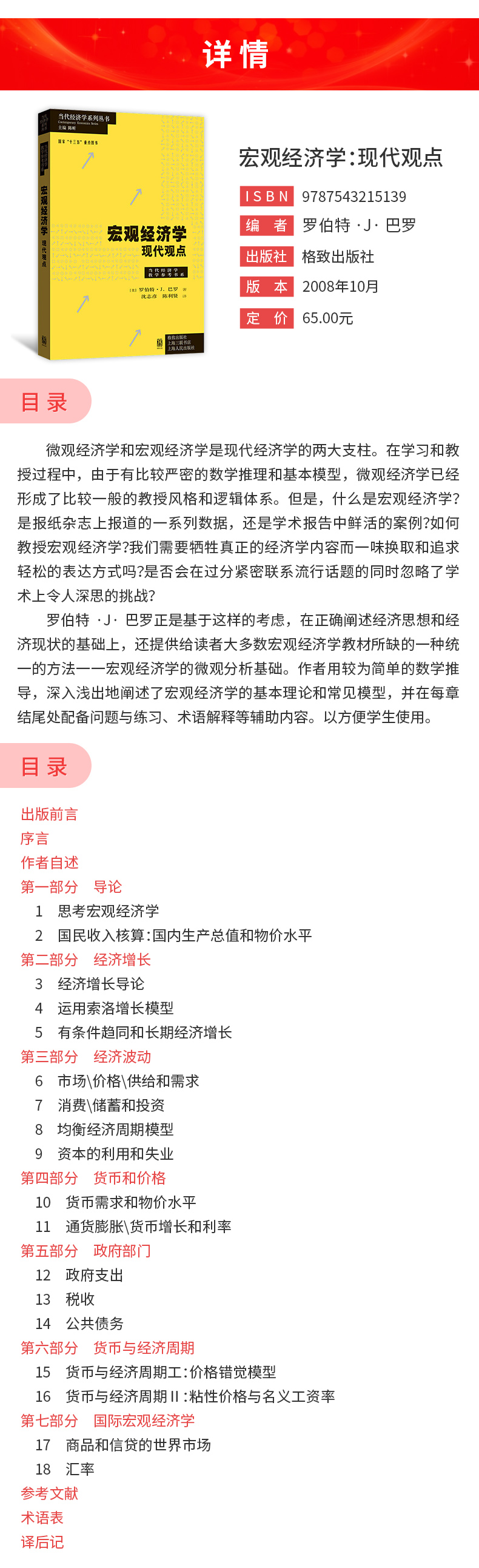 巴罗《宏观经济学:现代观点》教材(格致出版社)
