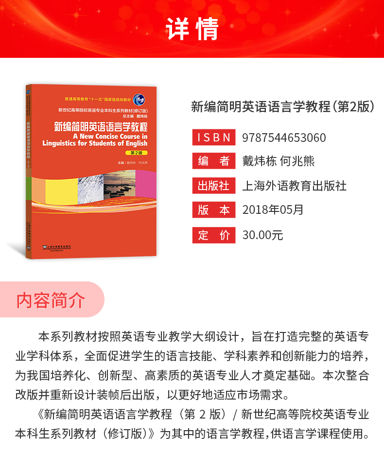 戴炜栋《新编简明英语语言学教程》(修订版第2版)教材(上海外语教育出版社)