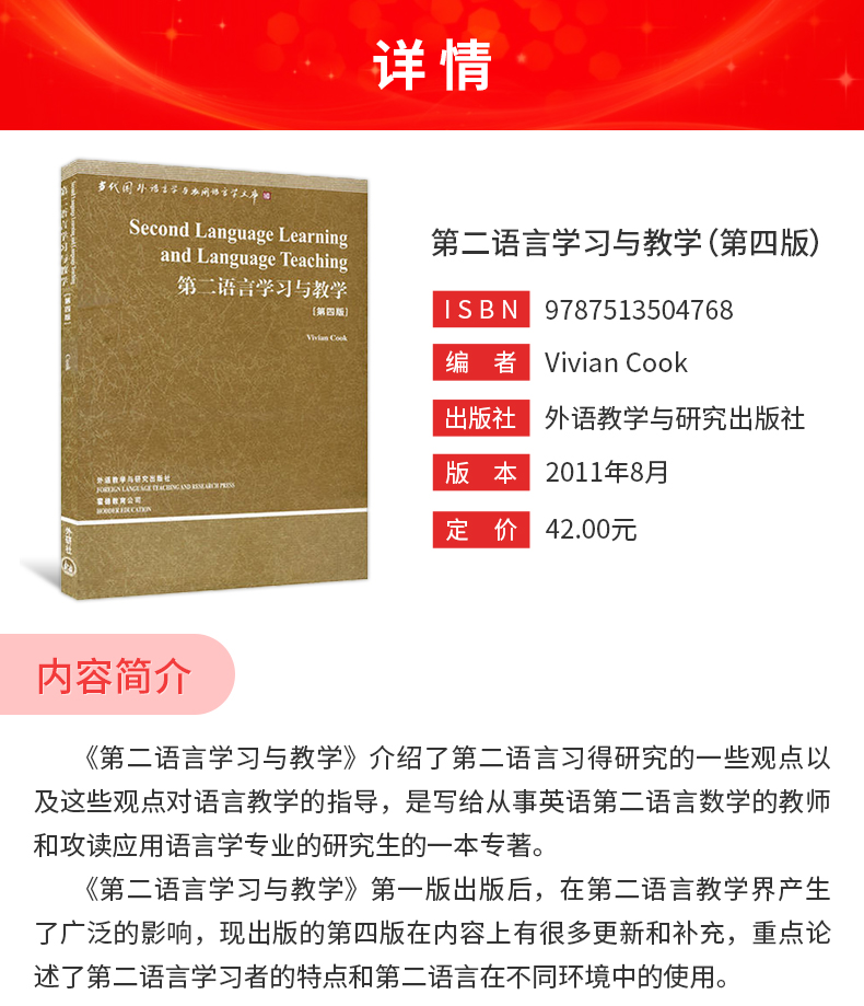 Vivian Cook《第二语言学习与教学》(第4版)教材(外语教学与研究出版社)
