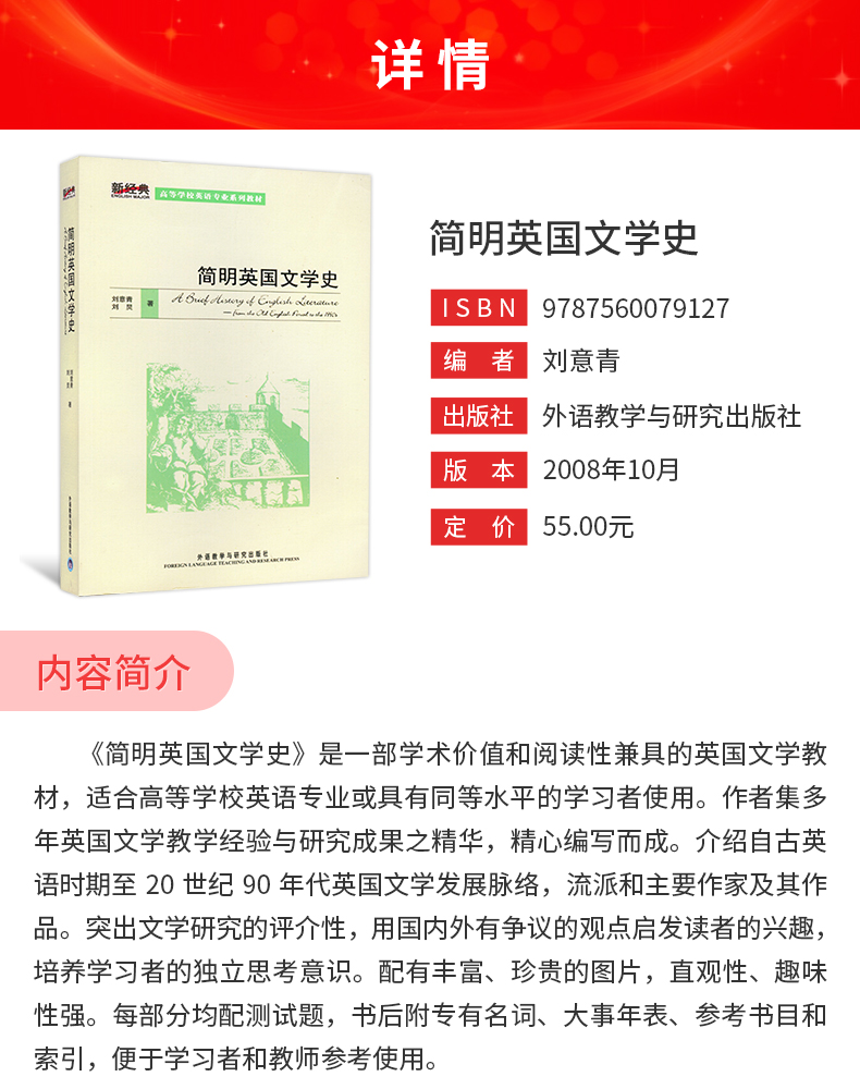 刘意青《简明英国文学史》教材(外语教学与研究出版社)