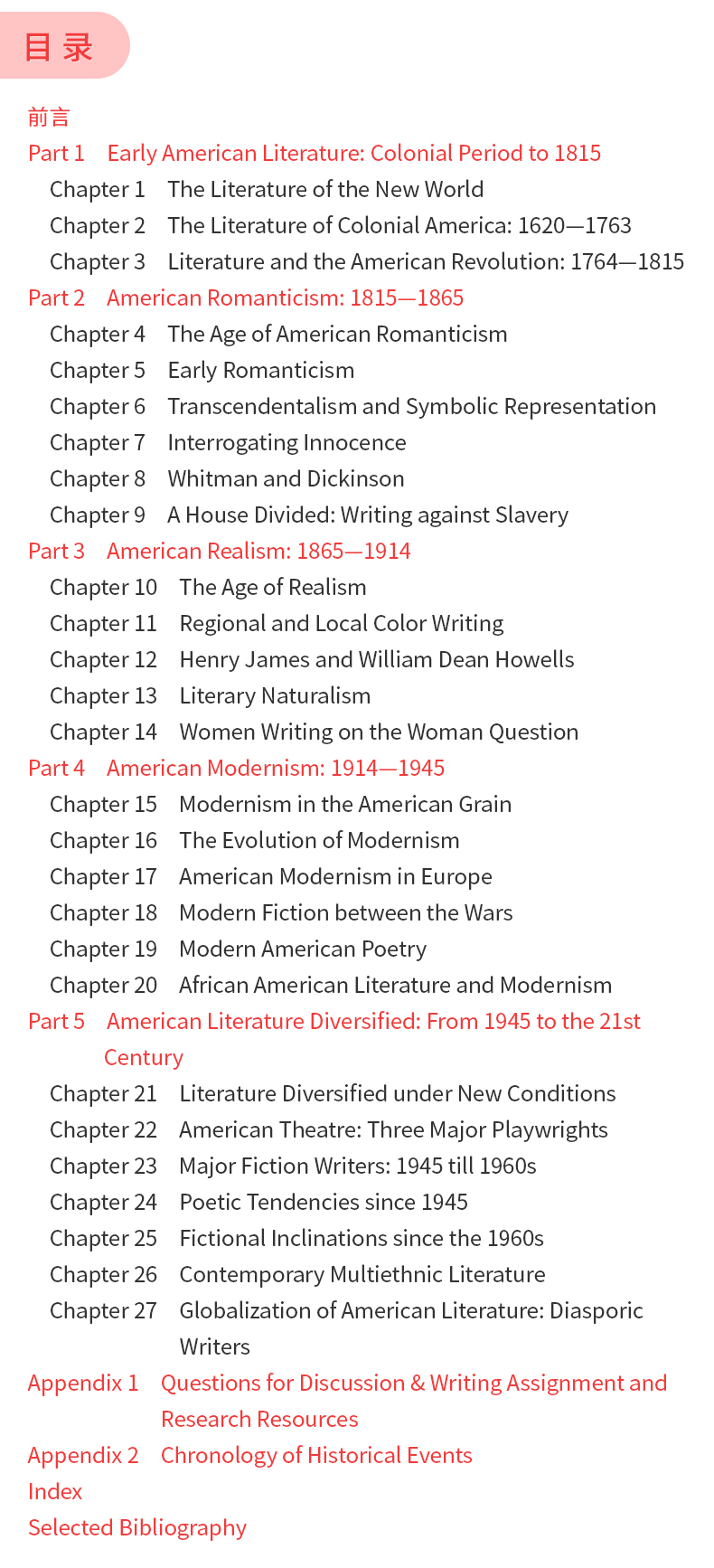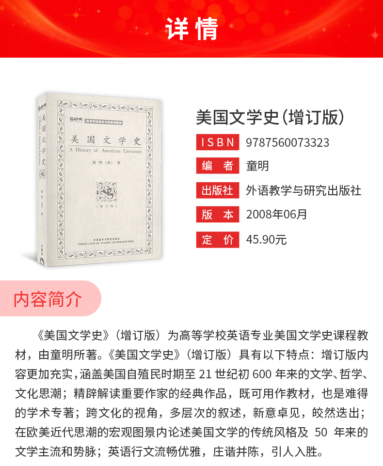童明《美国文学史》(增订版)教材(外语教学与研究出版社)