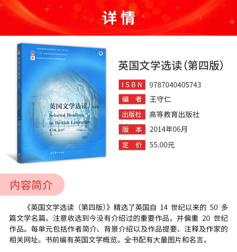 王守仁《英国文学选读》(第4版)教材(高等教育出版社)