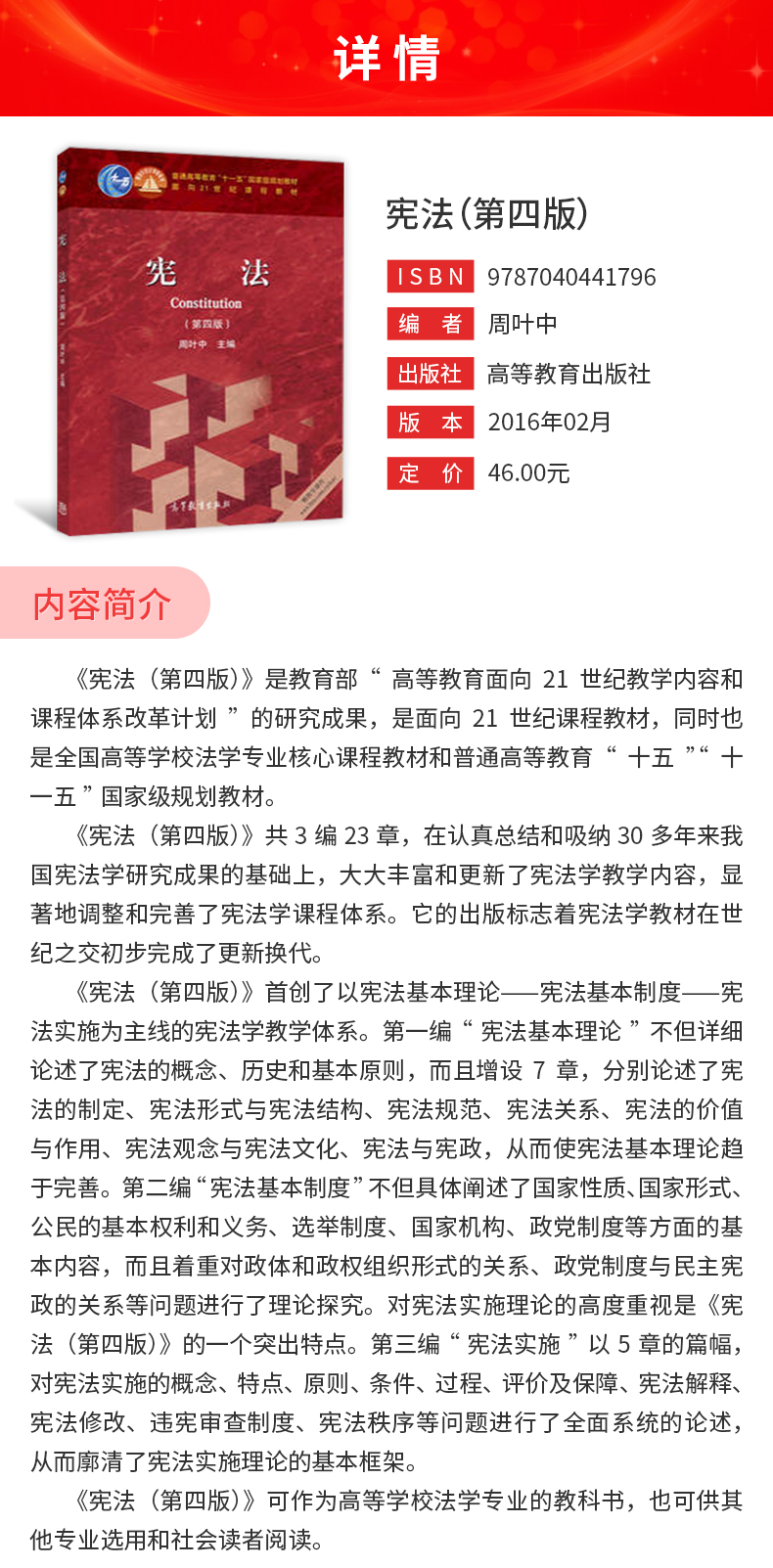 周叶中《宪法》(第4版)教材(高等教育出版社)