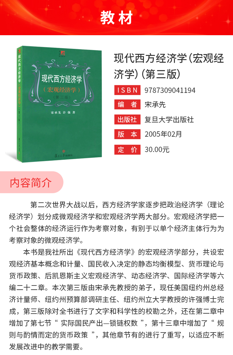 宋承先《现代西方经济学(宏观经济学)》(第3版)教材(复旦大学出版社)
