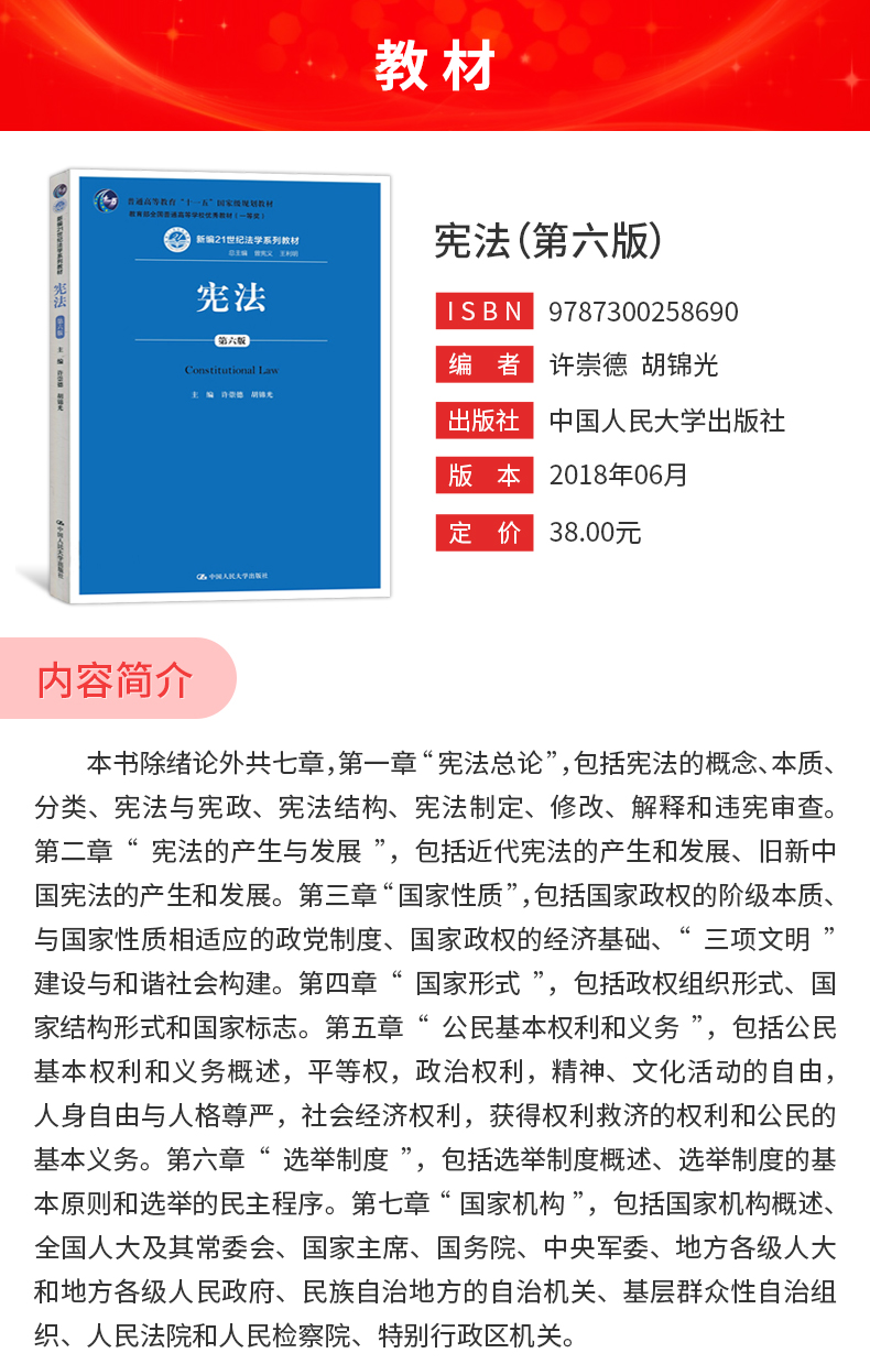 许崇德《宪法》(第6版)教材(中国人民大学出版社)
