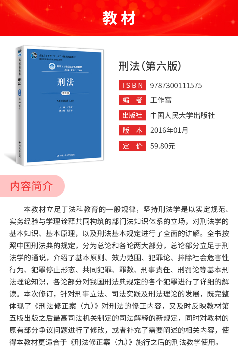 王作富《刑法》(第6版)教材(中国人民大学出版社)