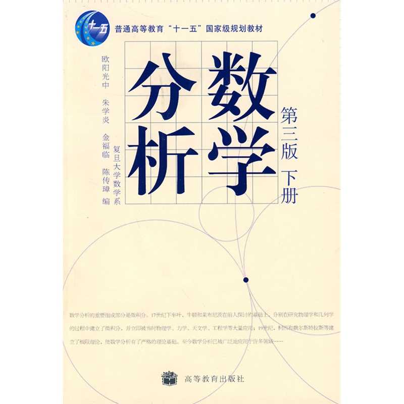 本书在1983年出版的第二版的基础上做了全面修订。修订的重点是概念的叙述和定理的论证以及某些章节内部结构的调整,同时,所有章节在文字上都重新梳理了一遍。 本书分上下两册,上册内容为极限初论、极限续论、单变量微分学、单变量积分学;下册内容为数项级数和反常积分、函数项级数、多元函数的极限论、多变量微分学、含参变量的积分和反常积分、多变量积分学。 本书可作为一般院校数学类专业的教材,也可作为工科院校以及经济管理类院系中数学要求较高的专业的数学教材。 目录 第三篇 级数 第一部分 数项级数和反常积分 第九章 数项级数 第十章 反常积分 第二部分 函数项级数 第十一章 函数项级数、幂级数 第十二章 傅里叶级数和傅里叶变换 第四篇 多变量微积分学 第一部分 多元函数的极限论 第十三章 多元函数的极限与连续 第二部分 多变量微分学 第十四章 偏导数和全微分 第十五章 极值和条件极值 第十六章 隐函数存在定理、函数相关 第三部分 含参变量的积分和反常积分 第十七章 含参变量的积分 第十八章 含参变量的反常积分 第四部分 多变量积分学 第十九章 积分(二重、三重积分,第一类曲线、曲面积分)的定义和性质 第二十章 重积分的计算及应用 第二十一章 曲线积分和曲面积分的计算 第二十二章 各种积分间的联系和场论初步 附录 向量值函数的导数 索引