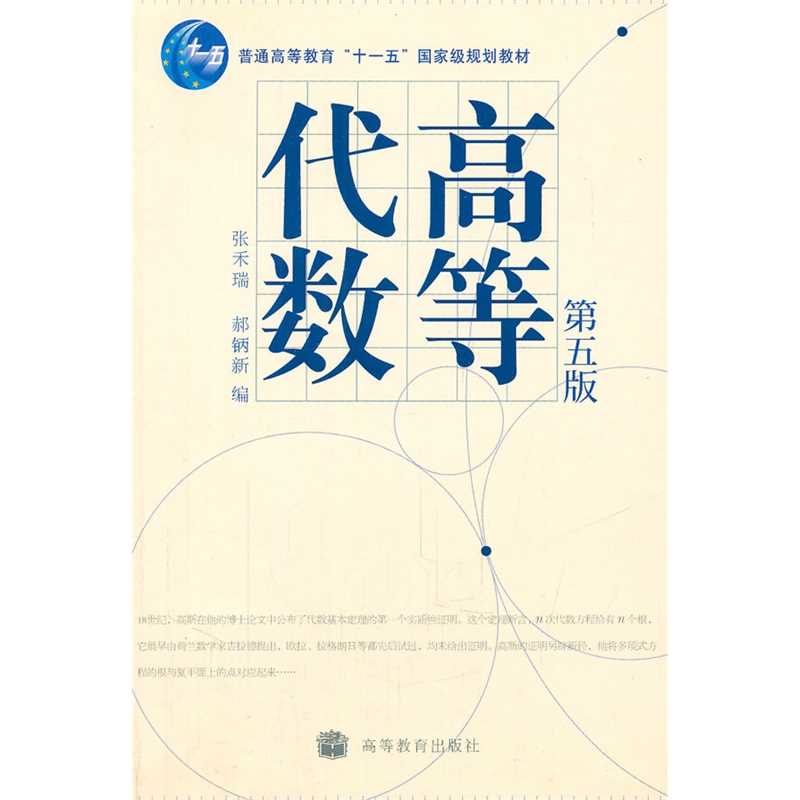 《高等代数》(作者张禾瑞、郝鈵新)第五版是在第四版的基础上,作了不太大的修订。第一章介绍代数中最基本的概念;第二章至第九章是多项式理论初步和线性代数基础这两部分,这是高等代数的中心内容;第十章对群、环、域作了简单的介绍;作为附录,从向量空间的分解的角度讲述矩阵的若尔当标准形式。 《高等代数》第五版可作为高等学校数学院系本科生教材,也可供理工科教师和学生参考。