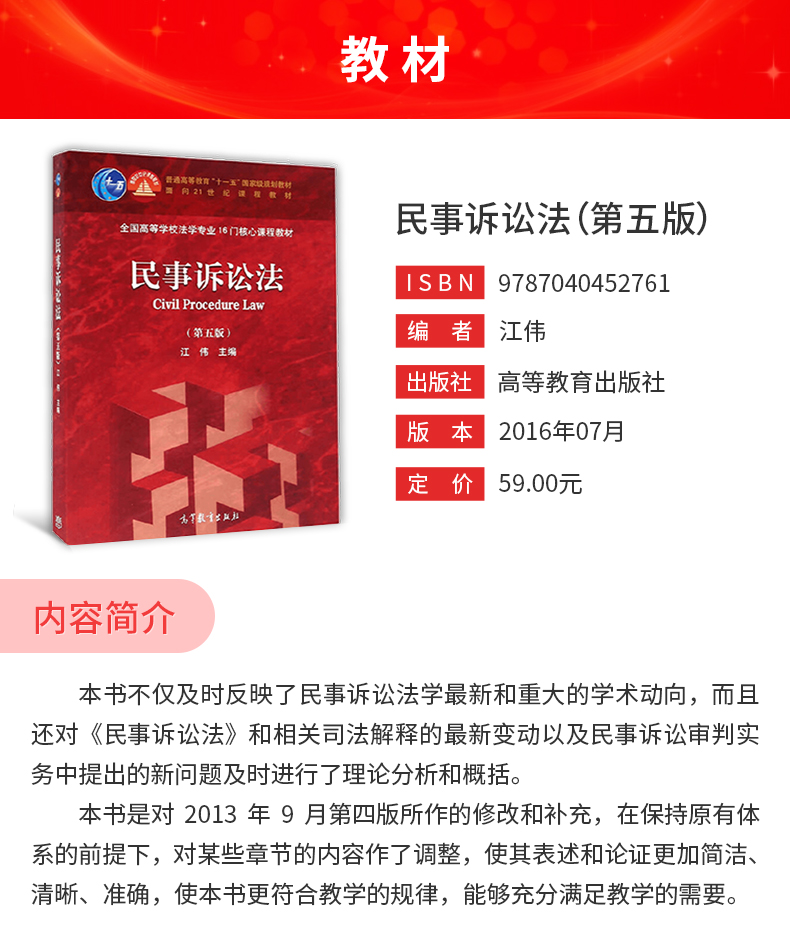 江伟《民事诉讼法》(高教第5版)教材(高等教育出版社)