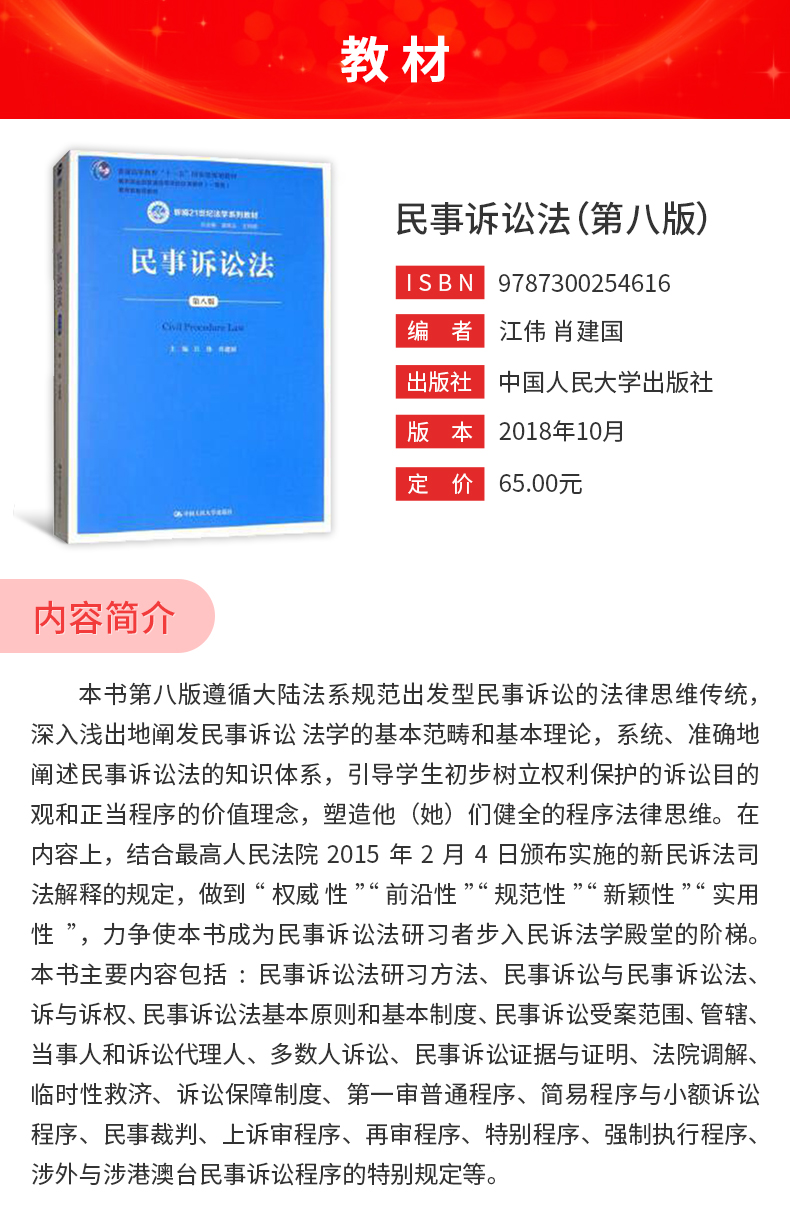 江伟《民事诉讼法》(人大第8版)教材(中国人民大学出版社)