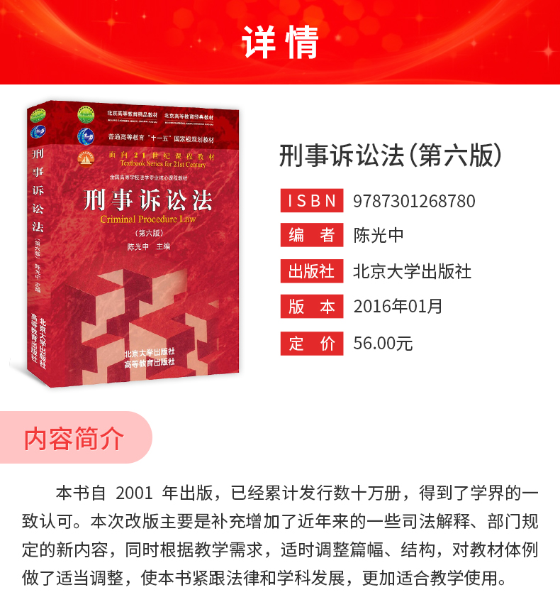 陈光中《刑事诉讼法》(第6版)教材(北京大学出版社)