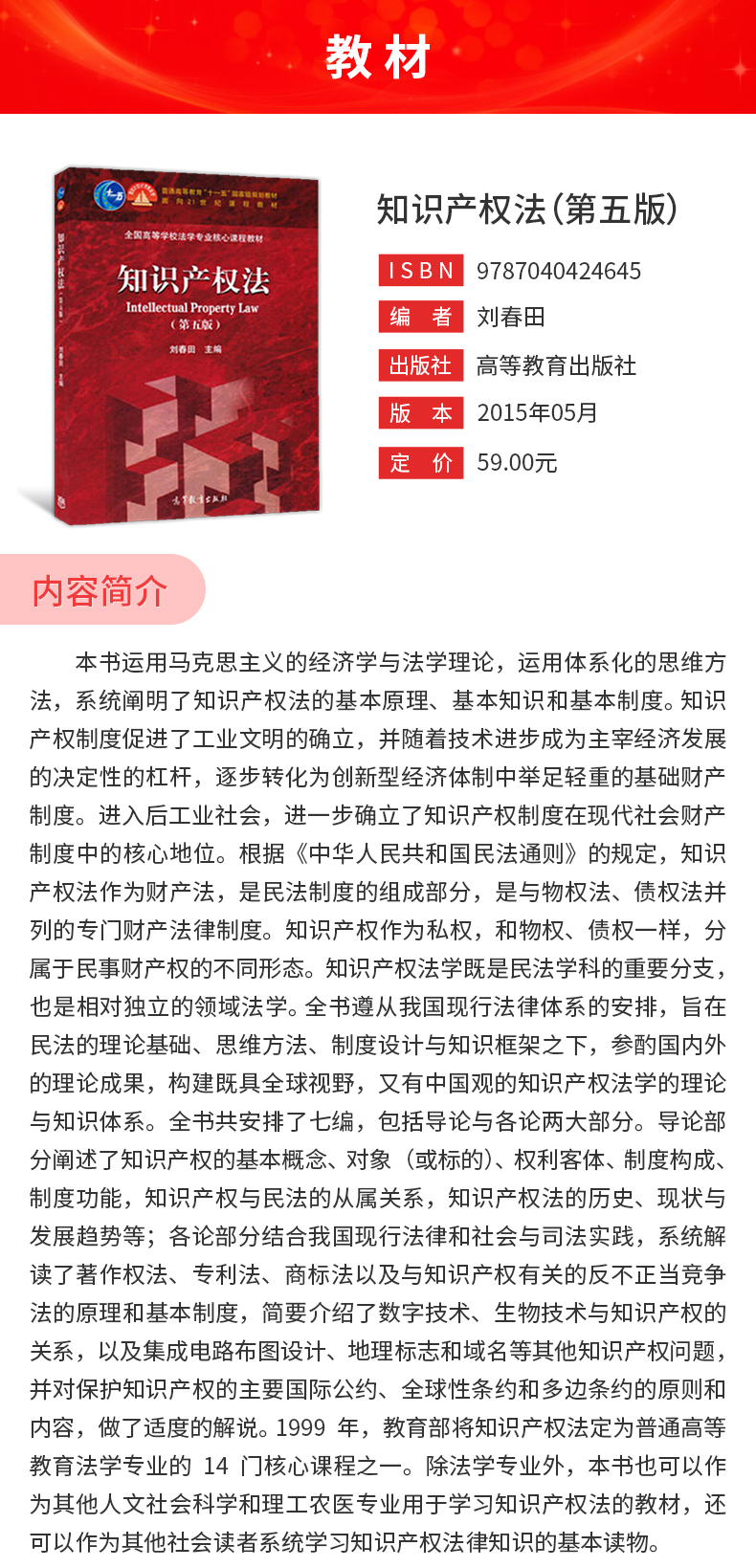 刘春田《知识产权法》(高教第5版)教材(高等教育出版社)