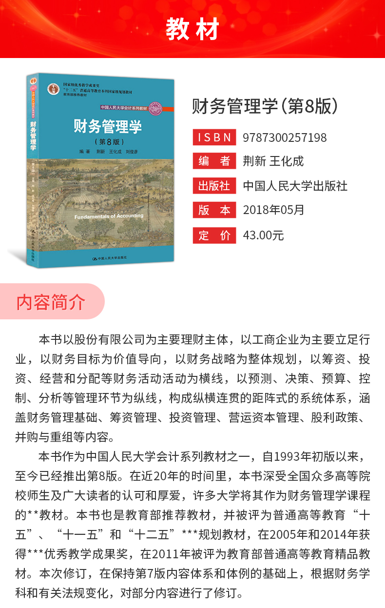 荆新《财务管理学》(第8版)教材(中国人民大学出版社)