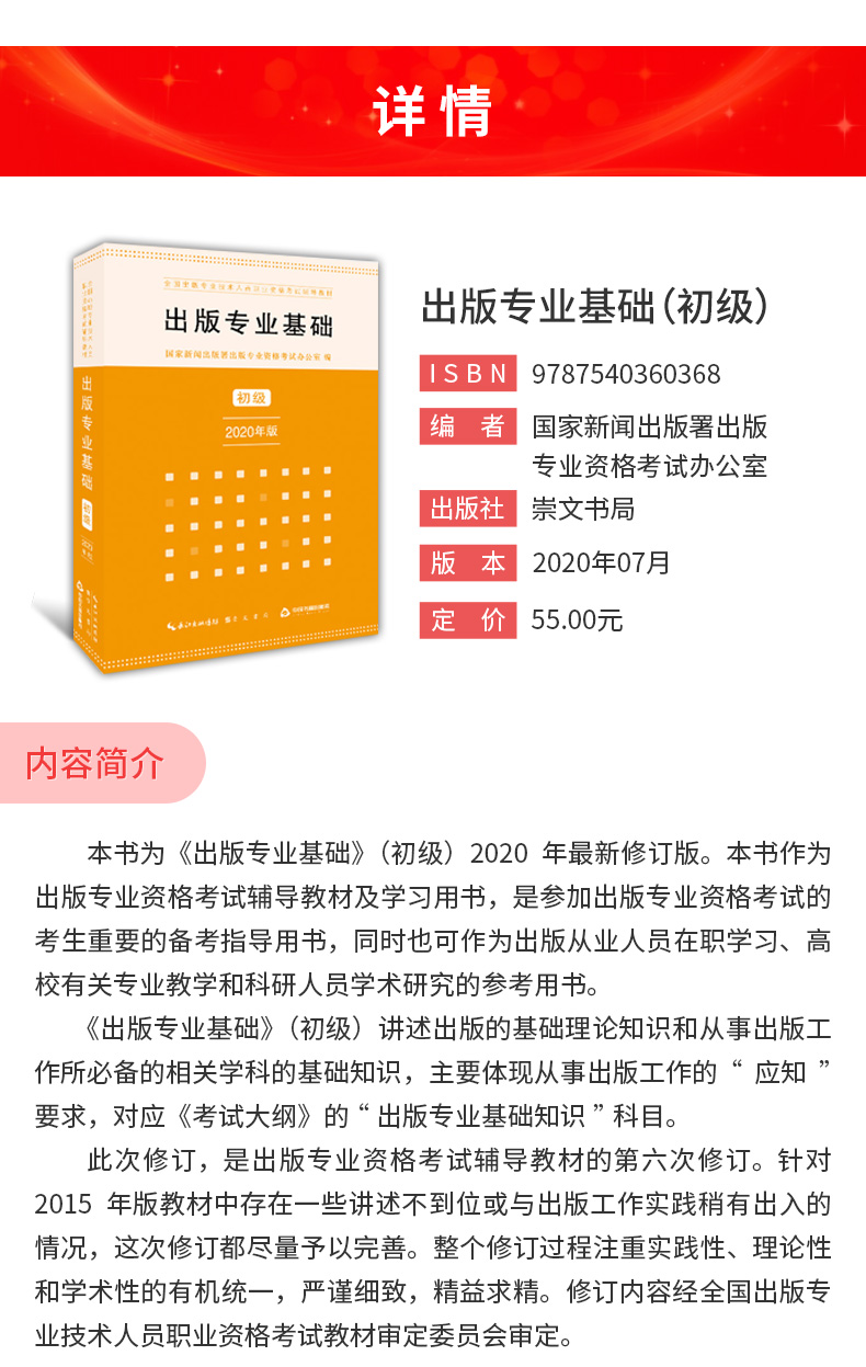 2020年出版专业职业资格考试《出版专业基础知识(初级)》教材(崇文书局)