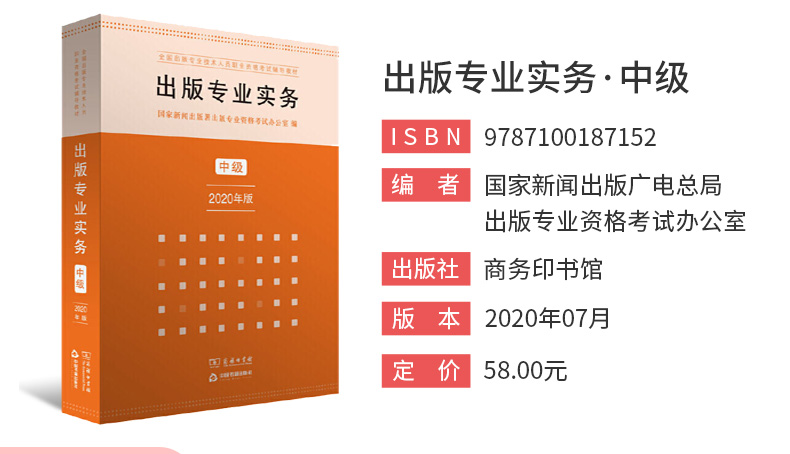 2020年出版专业职业资格考试《出版专业理论与实务(中级)》教材(商务印书馆)