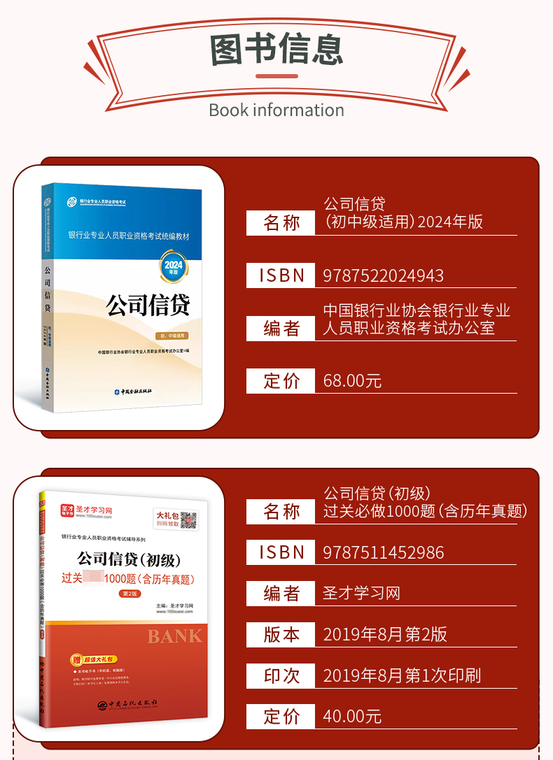 【全2册】银行业专业人员职业资格考试:公司信贷(初级)教材【2024版】+过关必做1000题(含历年真题)(第2版)