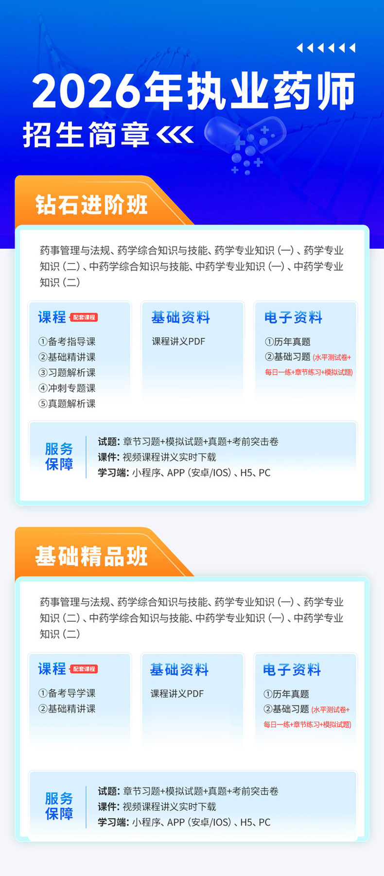 2026年执业药师职业资格考试西药学/中药学四科合一钻石进阶班/基础精品班