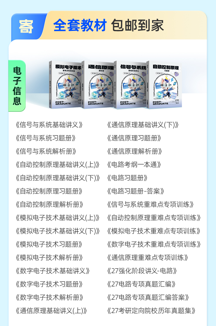 2027年电子信息考研VIP定向协议班【电路/信号与系统/自动控制原理/模电/数电/通信原理】