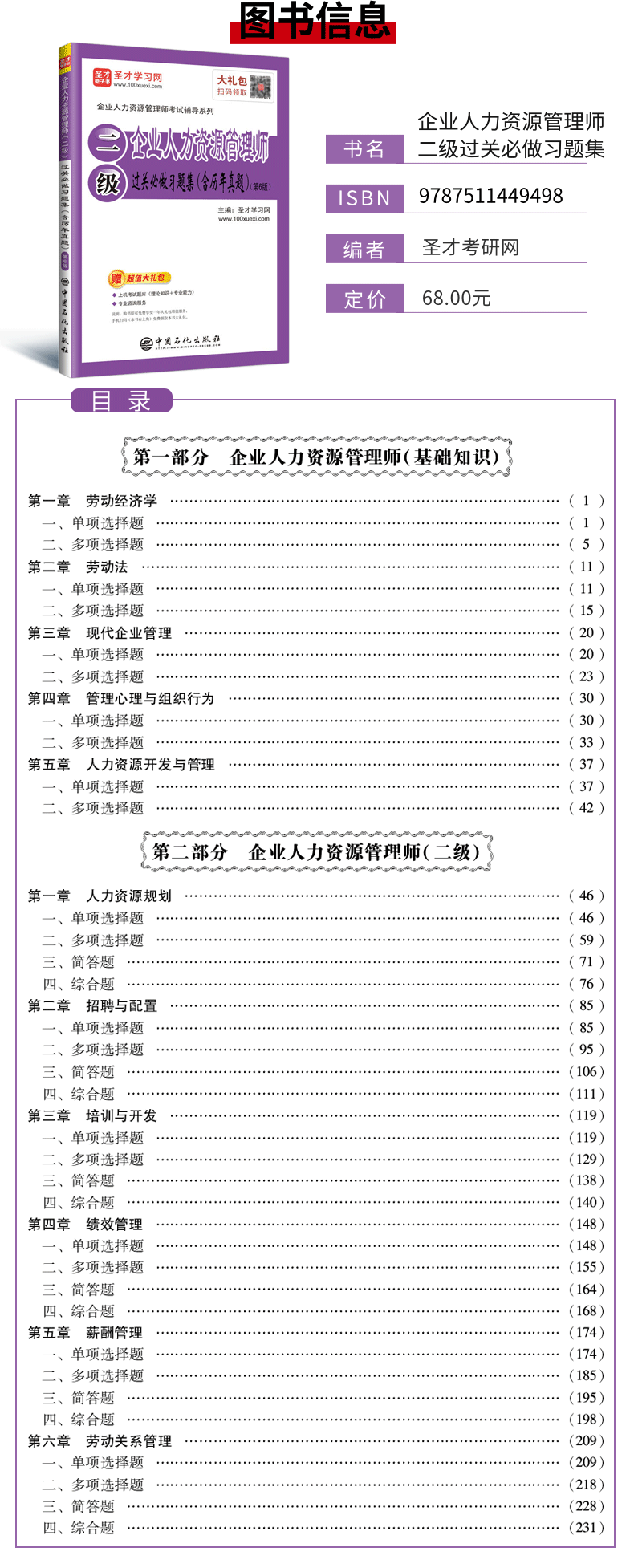 企业人力资源管理师资格考试:企业人力资源管理师(二级)过关必做习题集(含历年真题)(第6版)